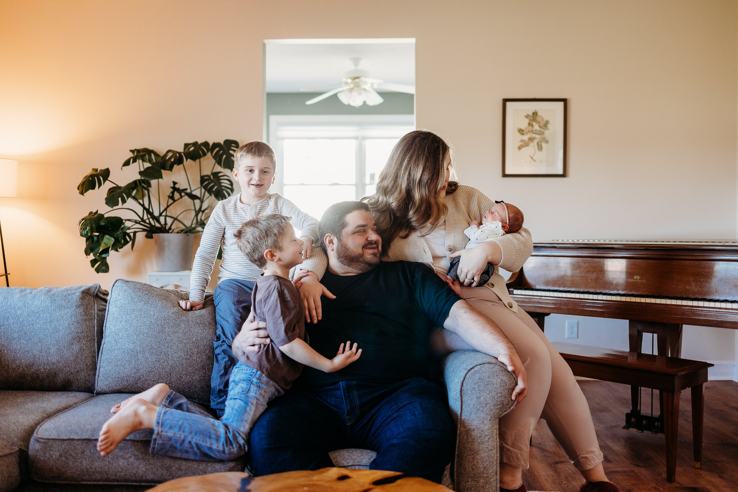 I had such a great time with Julia, Adam and their three kiddos last week at their in-home photo session! Molly their newborn was born a few weeks early and we almost missed this opportunity to grab these pics. The boys and I had so much fun literally bouncing around the house and their dad haha. We played, sang songs and enjoyed snuggling with their three dogs.